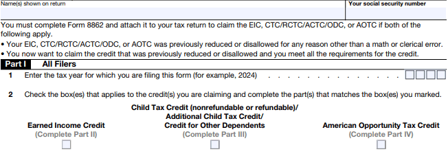 Form 8862 Guide: How to Claim Disallowed Tax Credits