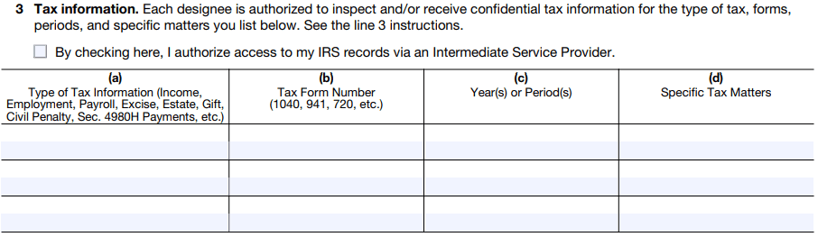 Limit the Scope | Only authorize necessary tax types, forms, periods, and parties (Line 3). | Minimizes risk of overexposure of sensitive data. |