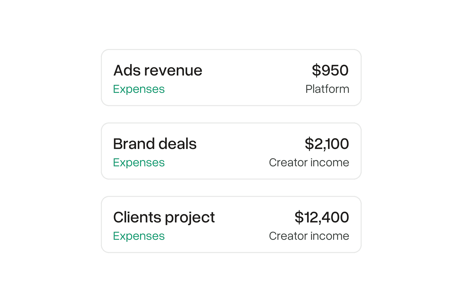 Income from brand deals, client work, subscriptions, and partnerships. We handle the accounting complexity so your business stays clean as it grows.