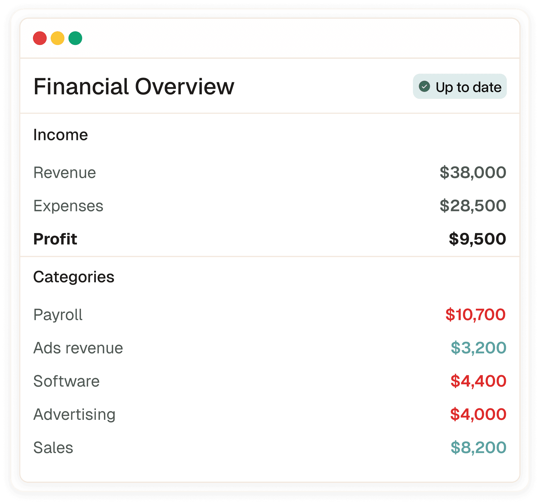 We keep every transaction categorized, reviewed, and accurate so your numbers are always up to date.