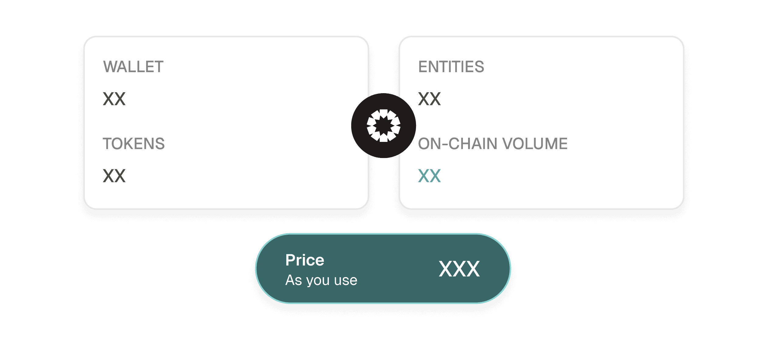 Pricing scales with your complexity (e.g. number of wallets, tokens, entities, on-chain volume), so you pay only for what you use