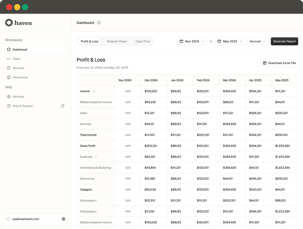 Can’t imagine going back to bookkeeping built for the 90s. With Haven, your books are in good hands.